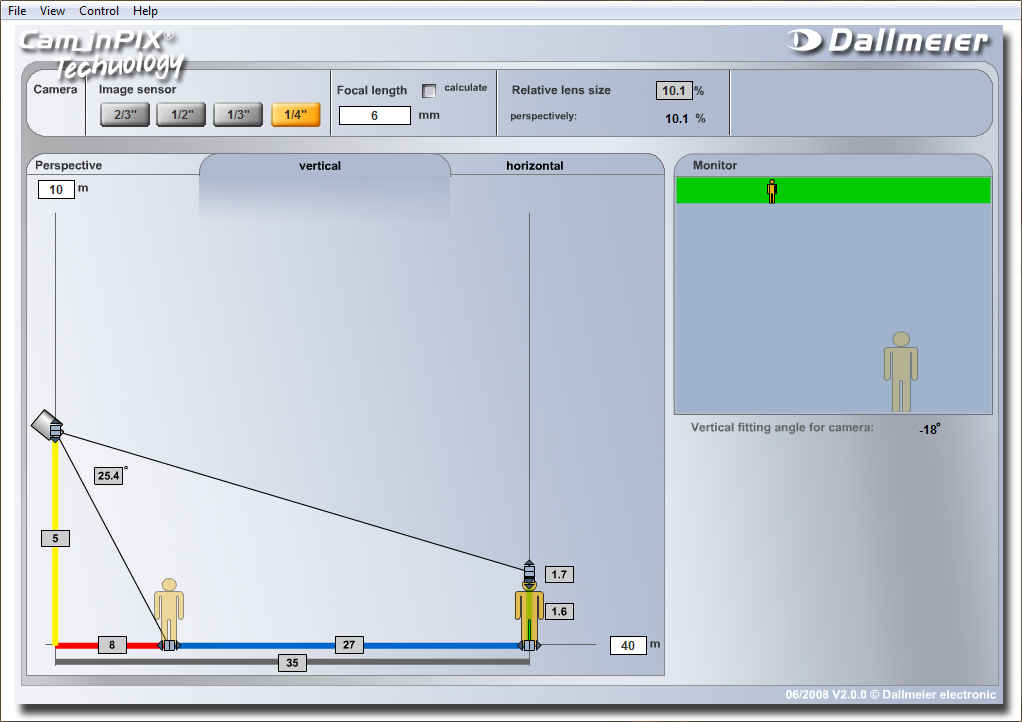 Для расчета углов обзора и дальности я использовал программу ViewDesigner Необходимо указать сенсор, линзу, высоту от земли, дальность необходимого наблюдения и тп. И программа выдает наглядные данные которые можно наложить на макет и получить картину того что получится. И изменить при необходимости расположение камер для улучшения наблюдения.